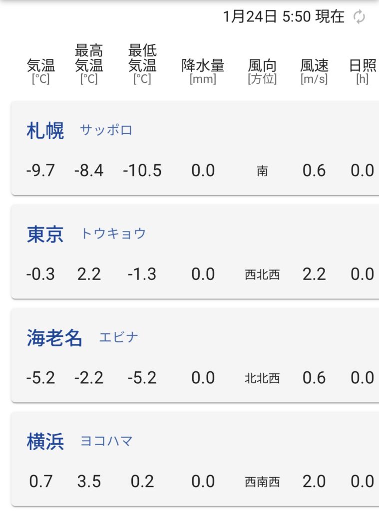 朝6時時点で-5.2℃