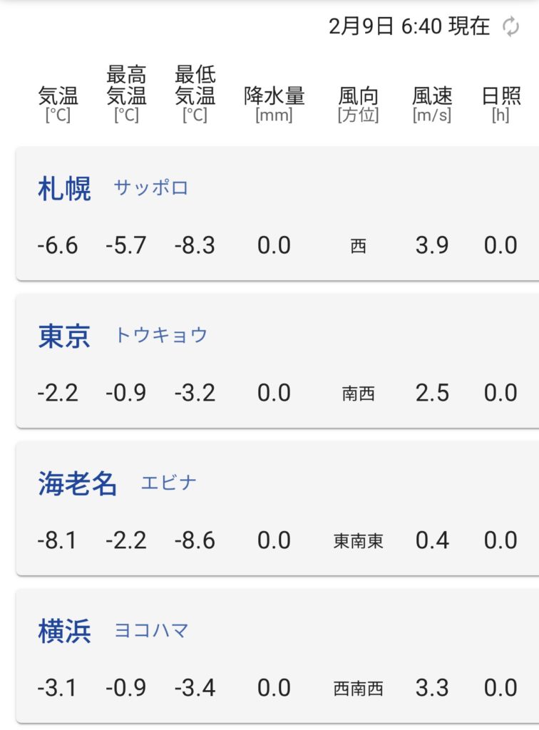 海老名市の気温-8.1℃
