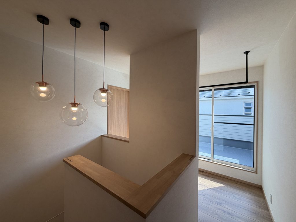 吹き抜け部分にかわいい照明